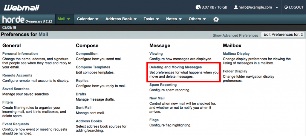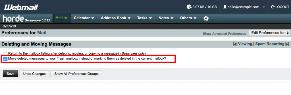 Enable ‘Move Deleted Emails to Trash’ instead of marking for deletion (strikethrough)
